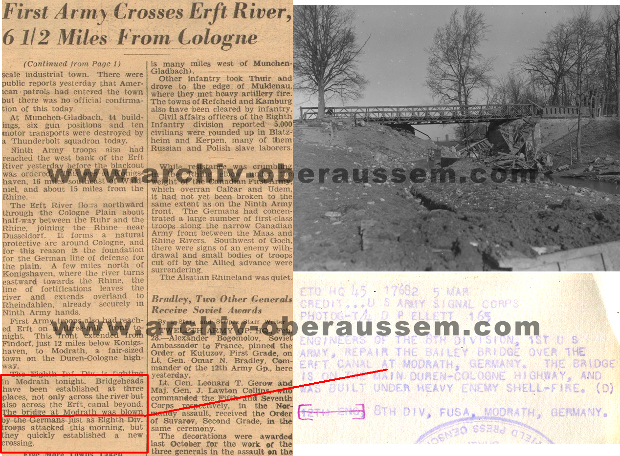 Um den Nachschub in Richtung Neuss zu sichern wurde dann am 3. März eine 60ft. D/S Bailey Bridge bei Bedburg vom 324th Armored Engineer Battalion, C Bn, gebaut.