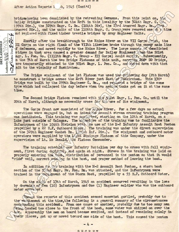 3-Mar-1945 99th Div. 324th Eng. C. Bn. Bedburg, Germany Delivered a 60' Double Single Bailey Bridge and constructed it over the Erft Canal.