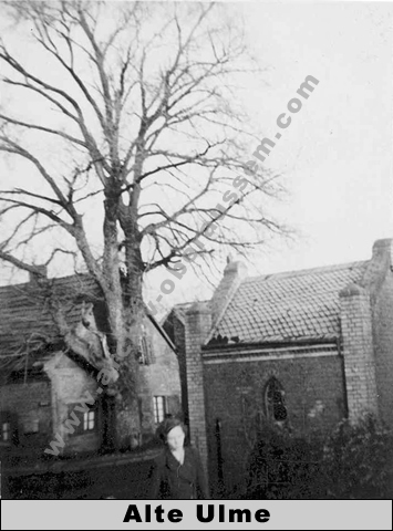 17:00 Uhr, die Panzerspitze hatte den Abzweig Fortunastrasse / Am Rott (heute Reutergasse) erreicht. Das 32nd Armd. Regt. und das 703rd TD Bn. teilte sich in Richtung Ortsmitte, über die Fortunastrasse und entlang der Kippe in Richtung Kämpchen (heute Friedhofstrasse) auf. Vor der Kurve, im Schutz der alten Ulme, hatten sich deutsche MG-Schützen eingegraben die sich nach kurzer Gegenwehr aber in den Ort zurück zogen. Unterdessen hatten amerikanische Panzer und Infanterie das freie Feld zwischen Am Rott (heute Reutergasse) erreicht, als massiver deutscher Beschuss aus Richtung Am Tonnenberg und Mühle den Vorstoss zum stehen brachte. Hier oben, zwischen Kämpchen, Tonnenberg und Mühle (heute Zum Rott / Föhrenweg / Am Grüneck) standen die Reste des deutschen Grenadier-Regiments 957 unter Hauptmann Rudolf Mascher. Seine Männer waren dabei sich im Schutze des Gegenfeuers einzugraben. Vorgeschobene Beobachter, bewaffnet mit MG, Panzerfaust und leichten Waffen, beobachteten die heranrückenden amerikanischen Panzer und Infanteristen von der Ecke Kämpchen / Am Rott (heute Friedhofstrasse / Reutergasse) und griffen später in den Kampf ein.