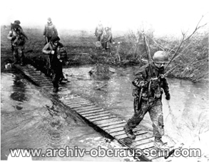 Die ersten amerikanischen Infanteristen überqueren die Erft