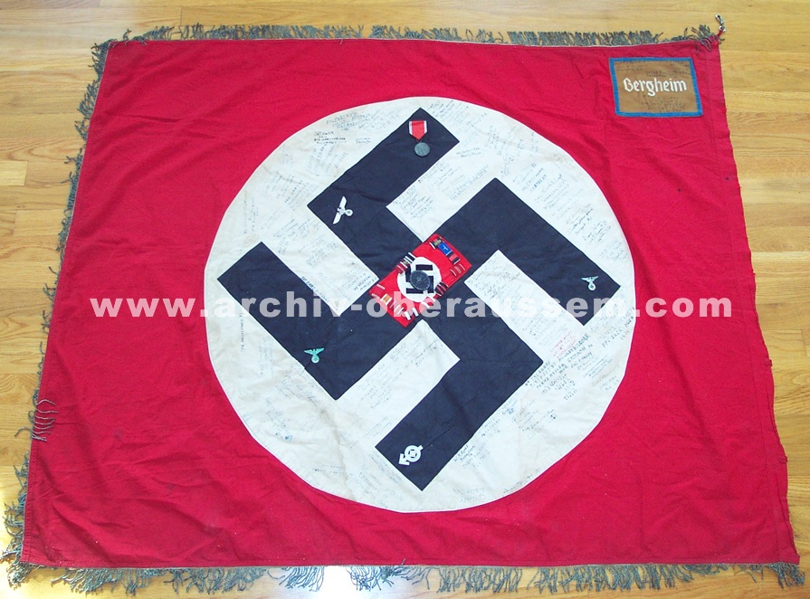 Flag signed by the men of the 3rd Battalion, 395th Regiment (United States) after seizing Bergheim, Germany from the Nazis, March, 1945. TEC 5 Herman F Delventhal - L/395