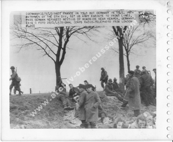Pausenlos schlagen am 2. März Artilleriegeschoße ein. Die Häuser der Familien Maus, Kulartz und Conzen werden getroffen. Parteimitglieder suchen nach Vieh, das sie mit über den Rhein nehmen können.