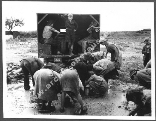 Während in Fliesteden die Einwohner noch am 5. März im Kloster festgehalten werden, normalisiert sich das Leben in Glessen bereits. Amerikanische Sanitäter versorgen die verletzten Einwohner von Glessen.