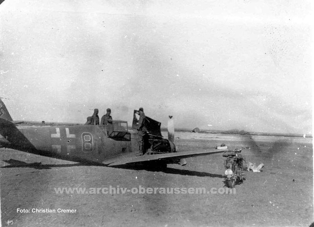In der Kurbelei, der sich ein stetiger Höhenverlust anschloss, blieb ich etwas hinter meinen Schwarm zurück der mittlerweile trotz schlechter Sicht, im Tiefflug auf ein Kraftwerk zu flog. Ich sah noch wie Claus ( Todt ) eine scharfe Linkskurve fliegen wollte als in diesem Moment ein hoher Schornstein des Kraftwerkes aus dem Nebel zum Vorschein kam. Die Tragfläche seiner Maschine berührte dabei den oberen Teil des Schornsteins worauf hin die Tragfläche explodierte. Dann war ich aber durch die schlechte Sicht selbst so beschäftigt, dass ich ihn und die anderen völlig aus den Augen verlor.