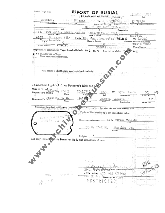 | Cunningham | Jessie J | Tec 5 | 32nd Armor | † 26.02.1945 | 35869493 | Armor |