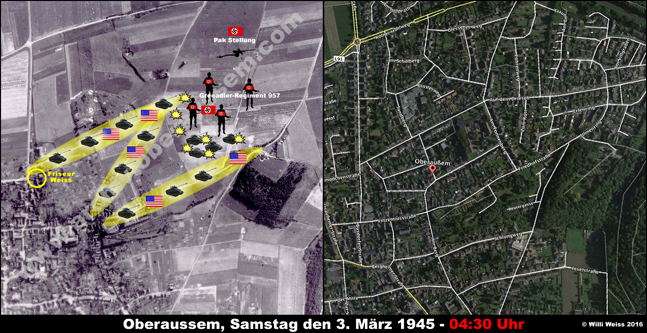 Am Morgen des 3. März 1945, gegen 04:30 Uhr griffen im dichten Nebel die amerikanischen Panzer aus Oberaussem an.