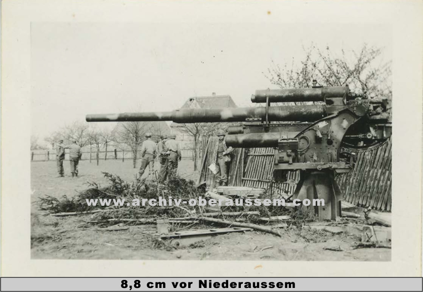 Anmerkung des Autors: Ein sehr grosses Anliegen von mir wäre es gewesen auch den deutschen Soldaten, die beim Kampf in Oberaussem gefallen sind, einen Namen zu gegeben, vielleicht sogar ein Gesicht in Form von einem Foto oder Totenzettel. Leider ist das Kirchenbuch seit geraumer Zeit „spurlos“ verschwunden und somit auch die Namen und Daten der gefallenen deutschen Soldaten im Ort. Die gesamte, im Kirchenbuch über Jahrhunderte, niedergeschriebene Geschichte ist „abhanden“ gekommen…….