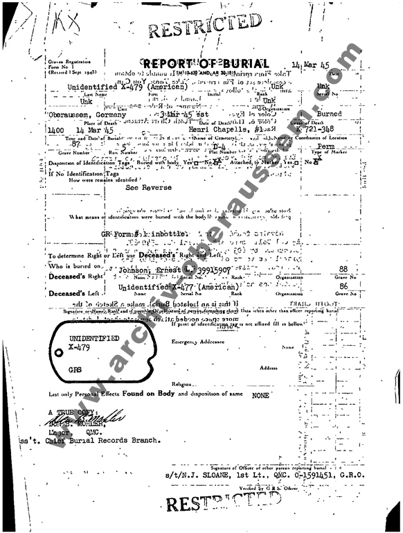 Der amerikanische Quartermaster bat den damaligen Pastor Öhm die deutschen Gefallenen zu bergen und deren Personalien aufzunehmen. Diese Daten wurden von Pastor Öhm in das Kirchenbuch eingetragen.