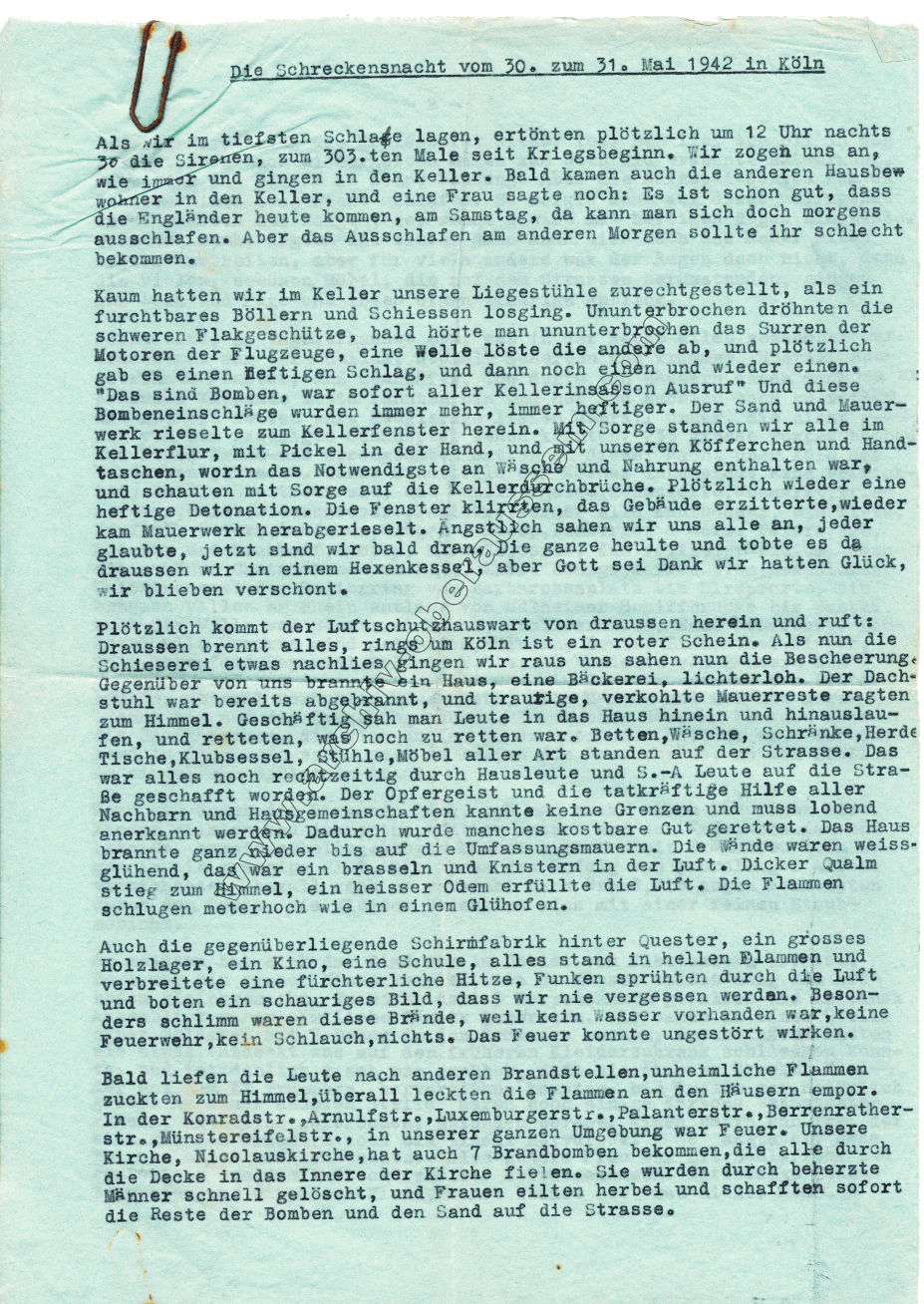Eine Zeitzeugin aus Köln berichtet:
