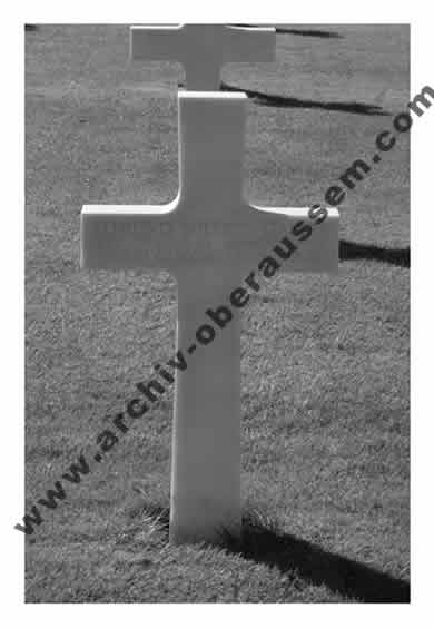 Durch meine deutschen Vorfahren und Verwandten in den Staaten sprach- und verstand ich etwas Deutsch, die Deutschen aber sprachen recht gut Englisch. Mittlerweile behandelte mich der Deutsche Major mit der Höflichkeit eines Offiziers. Einige Zeit später sah ich einige meiner Männer wieder, da sie über dem gleichen Bereich abgesprungen waren wie ich. Ich erinnere mich aber nicht mehr an ihre Namen. Es war verrückt, er nahm uns in einem Auto mit und wir fuhren zu einem Feld wo die „Nase“ von unserem Flugzeug lag. Etwa 50 Meter entfernt davon lag der Körper vom Bombardier. Und dann, nur wenige Meter weiter, es war eine Art Dreieck, lag der andere Körper…