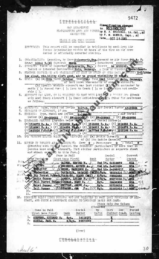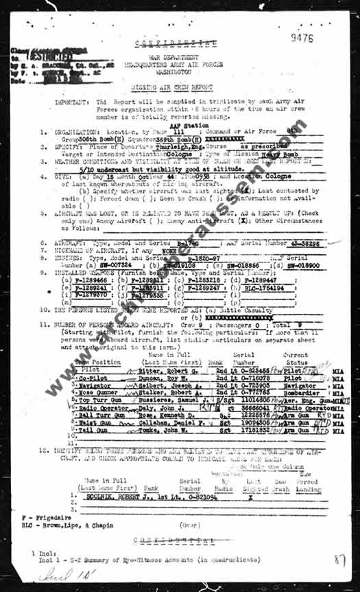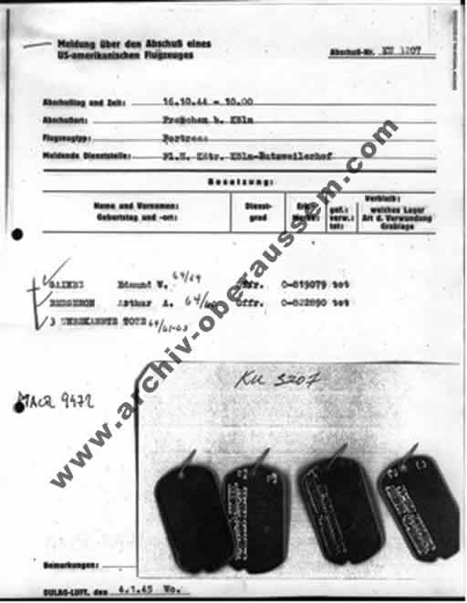 Letztmalig gesehen über Köln von 1st Lt Robert J. Scolnik, ASN: O-821094