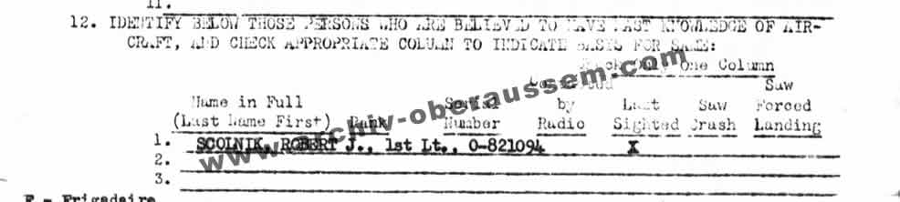 | Angaben von 1st Lt Robert J. Scolnik |