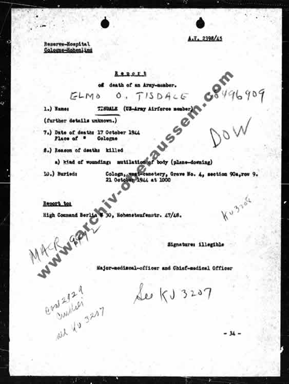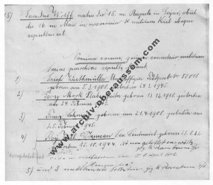 | Report der Deutschen Luftwaffe an die amerikanische USAAF über den Tod von 2nd lieutenant Roy W. Duncan |
