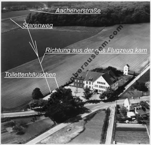 | Luftaufnahme von Köln-Flittard – dem Abschusspunkt der Maschine |