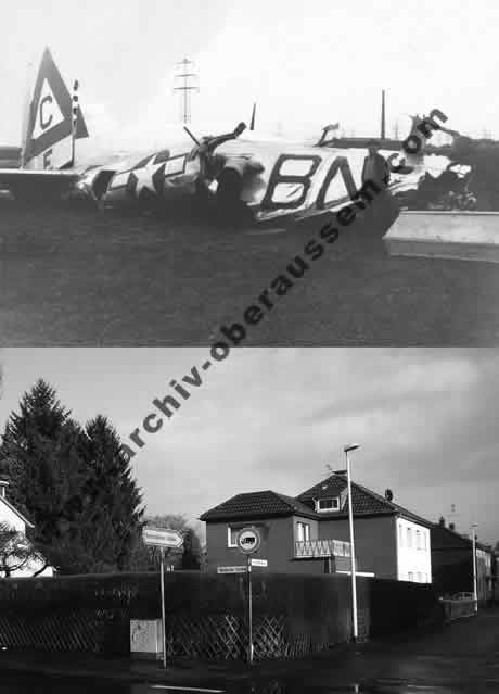 „Aus Richtung Pulheim näherte sich ein schwerer Bomber im Sinkflug mit einer schwarzen Rauchfahne und drehte dann ab in Richtung Königsdorf.“ Er habe einen Mann am Fallschirm gesehen. Gemeinsam mit anderen Dorfbewohnern lief er zur jetzigen Tomburgstraße, wo das Crewmitglied niederging. „ Der Ami, dessen Landung ich sah, stand auf und schaute uns